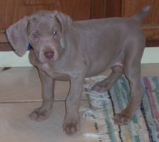 My sister has, by her own admission, lost her mind. Not one week after buying a little Basenji puppy, her and her fiance Jared decided that no dog should be without a playmate, and went out and picked up this 8 week old Weimaraner puppy. He's an adorable little guy, but look at the size of those paws! He's got a lot of growing to do! 80 pounds of it, apparently. Eek.