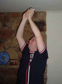 Gary caught this pic of me celebrating shortly after defeating Sean and Manchester United in the SMFA Cup final. We're currently debating improved names for the tourney, which will hopefully occur regularly now that we've corrupted Matthew ... he bought an Xbox two days after the competition, determined to begin moving up the table. Sorry Dionne!