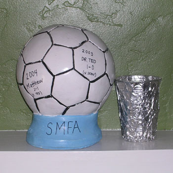 With Gary present at 9:45pm and Dionne and Michelle escaping to a late-night showing of Rent, the SMFA Cup began. Matthew had retrieved a "ceremonial screwdriver", which he declared he would have no need for since he wasn't going to have to relinquish his "SMFA Champ" license plate holders. At 1:45am the regular season ended, with everyone suffering from a bit of exhaustion.
