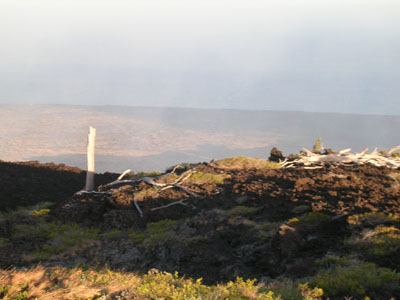 A nene (Hawaiian goose) wandering through the park Coming out of the lava fields and looking over the cliffs seaward The steam emanating from lava flowing into the ocean