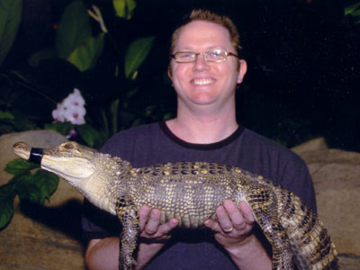 Another photo of my reptilian friend from the Gaylord Palms resort. This one is probably more reflective of the relationship of alligator and man ... i look scared s@$tless and he looks devilishly content.