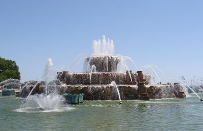 I'd already decided to forgo the meeting on Saturday, and got up around 10am. I lounged around my room for a couple of hours, then got dressed and walked a few blocks south to Yolk, an interesting-looking breakfast place i'd spotted on the bus ride to McCormick Place the day before. I sat at the counter and had a quite good chorizo, avocado, and tomato scramble while continuing my reading of Richard Rhodes's epic tome the Making of the Atomic Bomb. I then resolved to march back to the AMC Theater to catch an Indy matinee. On the way i stopped to take some photos of Grant Park, including this one of the fountain from the opening credits of Married with Children. You remember ... "love and marriage, love and marriage ...". The opening trailers for Indy got me further excited for this summer's crop of movies ... the Hancock trailer got me interested in Will Smith's turn as a drunken and apathetic superhero. Unfortunately, Indiana Jones failed to live up to my expectations. The action scenes were fine and all, but i found the plot ... well ... retarded. A nuclear explosion? Aliens? Interestingly, Shia LaBeouf is the least of this movie's problems. My experience with the entire film can be summed up by Indy's assessment of the treasure during the denouement, which i won't quote here to avoid spoilage but those who have seen the flick know what i'm getting at. It's straight out of a G.I. Joe public service announcement.