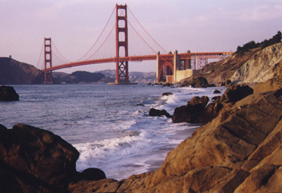 A view of the Golden Gate bridge from the Presidio One of my common positions Veronica and I on New Year's Eve, 1998