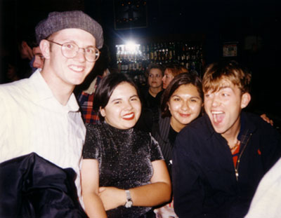 Me, Vroo, and Dionne get a goofy face from Blur frontman Damon Albarn I try to horn in on a shot of Dionne and Veronica with Blur guitar wizard Graham Coxon Bassist Martin Blunt of the Charlatans UK and i in front of the Live 105 studio