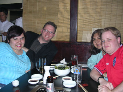 One half of the pre-party dinner table at Manpuku And the other half Veronica and the birthday girl Michelle