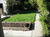 The backyard and the edge of the detached garage Planters by the garage The garage