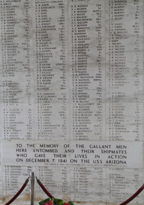 The names of the sailors and soldiers who lost their lives on December 7, 1941